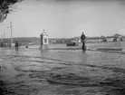 Översvämning i Marstrand, en grupp barn leker vid vattenbrynet
