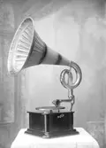 Utställningen "Skön fysik" i Parkettsalen, öppnar den 15 feb. - 31 aug. Trattgrammofon.