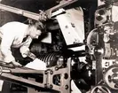 Tryckare vid en tryckpress. Personer: L A Malmstedt, J Algot Johansson