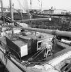 Tvåmastad slätskonare, troligen Ägil ex Sleipner, regnr 3035, med stor flaggning, i Uddevalla hamn. Briggen Emil i bakgrunden."