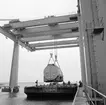 Personal i arbete vid transportparken (lyft av ubåtssektion)