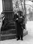 Uppsala universitets rektor Nils von Hofsten med krans vid Karl Johansbysten, Engelska parken
