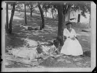 Bilden visar en grupp urinvånare från Patagonien i urskogen.