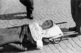 "Karantänsförläggning" på Kvarnbyskolan för flyktingar från koncentrationsläger i Tyskland 1945. En manlig flykting med en sköterska.