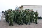 Tre soldater från Hälsinge Regemente, I 14, utövar vapenvård