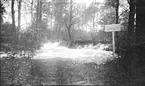 Från Stångåns dalsänka i Skorpa, där fallet genom evinnerliga tider givit kraft till kvarndrift. Vid tiden för bilden var även en trämassefabrik lokaliserad till platsen, varför behovet av fördämningar och överfarter ännu var behövligt.