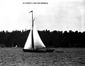 Vedskutor lossar vid Strandvägskajen, Stockholm. Seglen torkas efter ett regnväder.