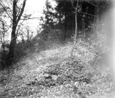 Köping sn, Norsa. Norsa RAÄ 131, grav 1. Gravfältet på våren med vitsippor och björkar. 1964.