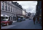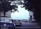 Bilar, Bilnummer, Bilhall 30 mars 1966 En bil står parkerad vid en gata. En skåbil kommer körande i bakgrunden. En dam syns på trottoaren mittemot.