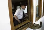 Ombord på ubåten Sjölejonet, Kapten Björkman konstaterar att det "fientliga" fartyget är i skjutläge.