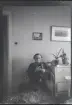 Porträtt av en familj, fotograferade i hemmet. "Kristina och August Karlsson, Dammkärr Ingrid och Stina, 1921."