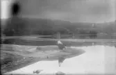 Havsbadet med Varmbadhuset till vänster. Enligt text som medföljde bilden: "Prof. Curmans villa o. kyrkan från sjön."
