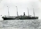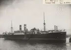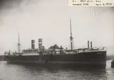 Foto i svartvitt visande last- & passagerarångfartyget "TRONDHJEM" av Köpenhamn i Köpenhamn under 1930-talet.