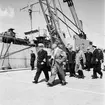 Fotografi från låda märkt Bernt Balchen. Balchen var norsk-amerikansk flygare, polarforskare och militär. Motiv av fyra män som står på en pir.