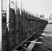Skåne, Kristiansstads län, V Barkåkra socken, Vejbystrand. Hamnen. Den inre vågbrytaren som går parallellt med strandlinjen. NV delen.