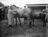 Hästpremiering-"A-hingsten Dunker från Funbo prästgård", Kobacken, Kungsängstull, Uppsala augusti 1940