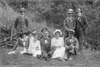 "Krigaren vilar sig." Några mannar vilar sig utomhus, mot en rishög m.m.