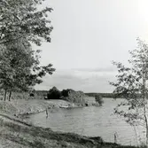 Skioptikonbild från institutionen för fotografi vid Kungliga Tekniska Högskolan. Motiv föreställande ett träd vid enstrandkant. Bilden är troligen tagen av John Hertzberg under en resa i Europa.