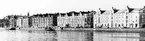 "Om en stolt sjöfartstradition vittnar de pampiga stenfasadern mot Gavleåns mynningsvik". Bilden finns med i boken "Ett 4faldigt leverne". Text Allan Lundberg och Foto Svante Hedin. Från utställningen "Gävlar i stan" på Gävle Museum 1967.
