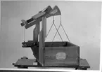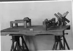 Båtämnet har tjärats invändigt och värmes nu upp för att sedan spännas ut. Obs vidjebanden i ändarna och de tydligt synliga hyvelspåren. Gåva av Institutet för folklivsforskning 1953. tryckt i Folk-Liv 1947