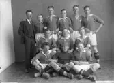 Arboga Atletklubb. Grabbarna är, från vänster: Leif Andersson, Lars Hinrich, Christer "Molla" Molin, Jan "Pyrre" Nyberg och Roger "Sluggo" Haglund. De vuxna, bakre rad, från vänster: Boy Hinrich, Börje ”Osten” Sjöberg Främre rad, från vänster: John Andersson, Sam Nilsson