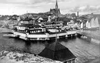 Gamla badhuset i Växjö, i hörnet Västergatan - Nygatan. Ca. 1910-tal.