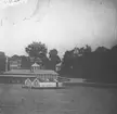 Studenterna, 3/6 1941. En kvinnlig student körs på lövad kärra utmed Västergatan, i korsningen Nygatan, norrut. Till vänster syns allén vid Teatertorget. Till höger skymtar dåv. Badhuset.