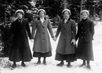TVÅ UNGA KVINNOR STÅENDE I SKOGEN.