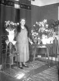Ateljé. Dam vid blompiedestal. Fotograf: Axel Lundbäck. Gullspångssamlingen. Bilder från Gullspång med omnejd.