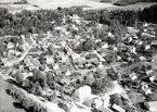 Vy över Kisa. Året är 1902 och ännu är ortens centrumbildning blygsam. Som ett tecken mot nyare tider kan uppförandet av Sveahuset invid Storgatan skönjas.