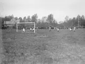 Fotbollslaget Fässbergs IF spelar match på Kvarnbyvallen i Mölndal, okänt årtal. Även motståndarlag och slutresultat är okända.