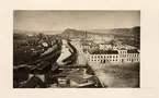 Enligt tidigare noteringar: "Stenbron och Hamngatorna från väster samt klocktornet i bakgrunden."