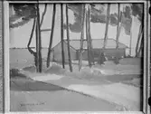 "Skulpturutställningen i Upsala tar form" - Bernhard Berg med skulptur av Axel Wallenberg, Linnéträdgården, Uppsala maj 1947