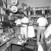 Kunder betjänas i Tempo-butiken i Umeå, november 1970. Bakom kassan hänger tobaksreklam.