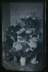 "Gustav Ekroth." Porträtt av en man som sitter vid ett bord fullt av gratulations-blommor.