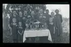 "Målsjö." Grupporträtt av släkt och vänner vid ett födelsedagsfirande.