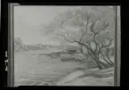 Ramad målning "Utsikt från Skansen över Stockholm" från 1891, av konstnär Karl Nordström.