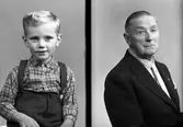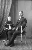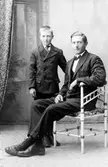 Porträtt av en pojke i tonåren och en yngre man, bägge välklädda. De sitter vid ett bord med en tidning i händerna.