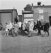 Korsningen Vasagatan-Klarabergsgatan. Klarabergsviadukten byggs. T.h. kv. Svanen (Västeråsbanans kontorshus) och t.v. kv. Pensionären. Lastbilen kör Vasagatan norr ut mot Norra Bantorget.