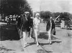 Sandvikens Järnverk (Sandvikens Jernverk). Prinsen av Wales besök vid Jernverket den 5 oktober 1932. Från höger: chefen för jernverket disponent Göransson, Prins George av Wales och landshövding Lübeck.