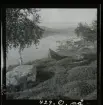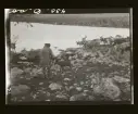 Ställning för likakja, med böjda björkstammar för duktäckning. Kuolhensaari, Kiellijärvi, Karesuando sn.