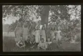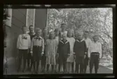"Skolavslutning" Grupporträtt av elever och lärarinna.