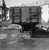 Aktiebolaget Stockholms Spårvägar, SS B5 901 "jitterbugg" kopplad med spårvagn A4 26 vid hållplats på linje 7 mellan Norrmalmstorg och Djurgården.
