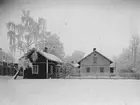 Enligt fotografens noteringar: "Selma Sahlbergs Ateljé längst till höger och Skräddare Johansson till vänster omkring år 1929 Obs Björkarna vid vägen"