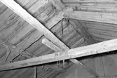 Skottar utan lina 3 mars 1966 Centralt i bilden syns knädjup snö ligga på ett tak. En man sär böjd översitt arbete. Han håller på med med snöröjning. En spade är står upprätt i snön till vänster om honom. Bakom mannen skymtar en stor skorsten. Mannen är klädd i arbetskläder och har keps på huvudet.