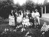 Kräfta uti det gröna 1937. Hjalmar K., Karin H., Asta L., From. Kräftskiva på Streteredshemmet i Kållered, år 1937.