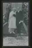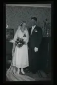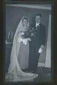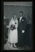 "Inga-Lisa och Karl-Erik Gredfors, Mo gård." Porträtt av ett brudpar.
