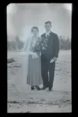 "Fall, Margit och Mats Mälström f, 1915, 1898." Porträtt av ett brudpar.