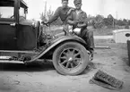 Bildäck. Interiör av Bil & Traktors verkstad, Norra Rådmansgatan 10, Gävle. Mars 1946. Beställt av direktör C.H. Tollertz.