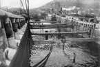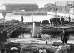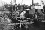 Bärgningar vid Gräsgård. Delar av vraken efter de tre tyska örlogsfartyg som gick in i en svensk mnspärr och sjönk 9/7 1941 bärgas.